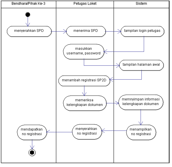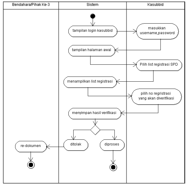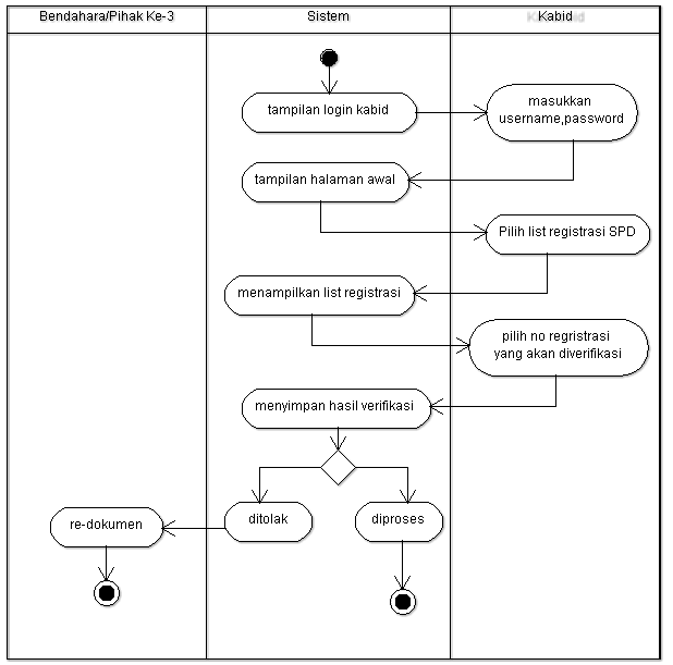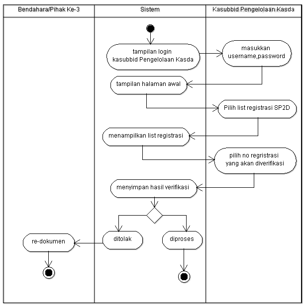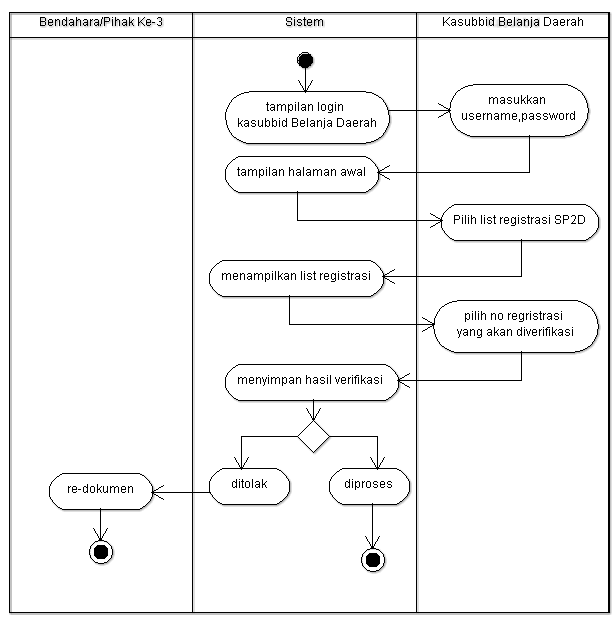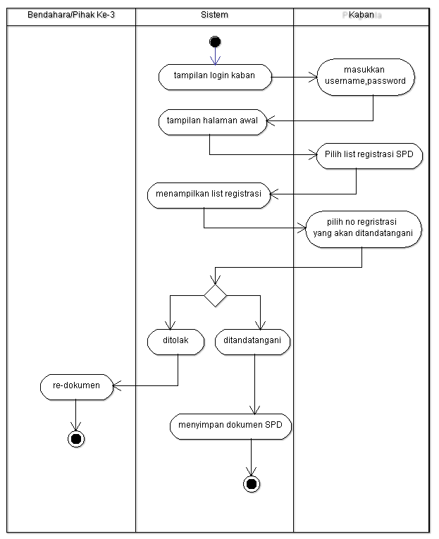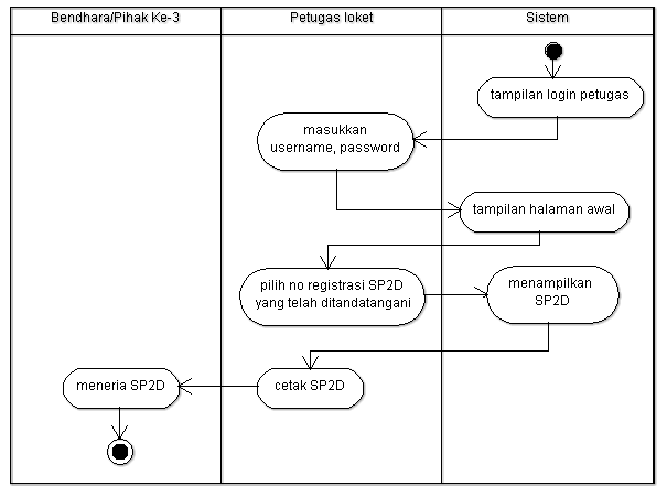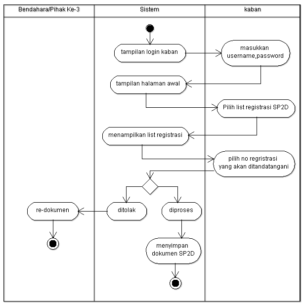 Activity diagram adalah diagram yang menggambarkan aktivitas dari sebuah sistem dari awal hingga bagian akhir dari aktivitas. Dibawah ini adalah gambar activity diagram dari sistem informasi perbendaharaan (SIPERBEN).
