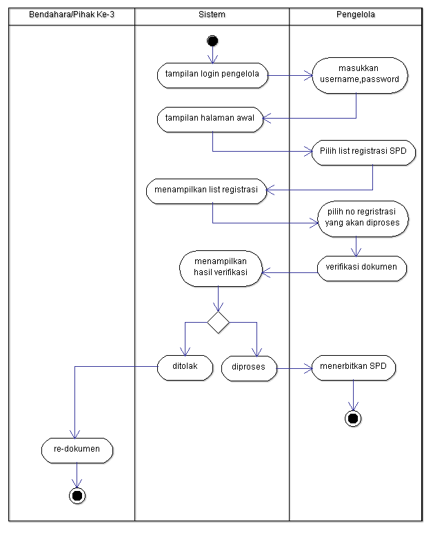 Pengelola melakukan proses verifikasi dokumen persyaratan pengajuan SPD. Jika hasil verifikasi diterima maka proses selanjutnya adalah menerbitkan SPD.