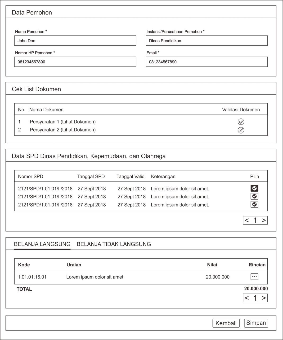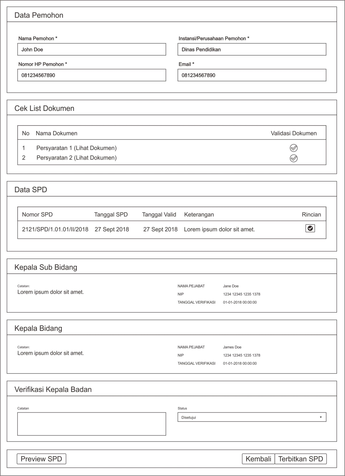 Jika permohonan pengajuan SPD ditolak maka dapat melakukan proses re-dokumen, yaitu dengan melengkapi kembali dokumen yang masih kurang atau belum sesuai dengan ketantuan.
