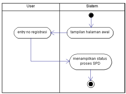 Untuk memelihat update status proses pengajuan SPD, user harus memasukkan no registrasi SPD pada sistem.